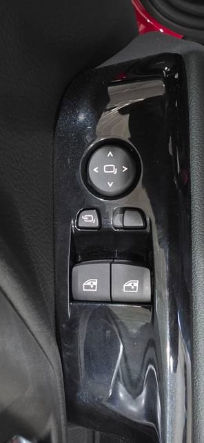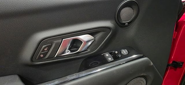 - Leather-trimmed shift knob with red ring.